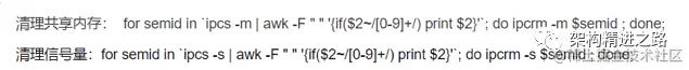进一步定位,由2.2可知,System V的IPC对象有共享内存、消息队列和信号量,其中可查的是共享内存空间和信号量,查询命令使用ipcs,常用命令如下: