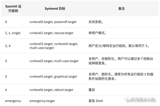 systemd用target取代了运行级别的概念。systemd下目标和常见runlevelt的对应关系如下: