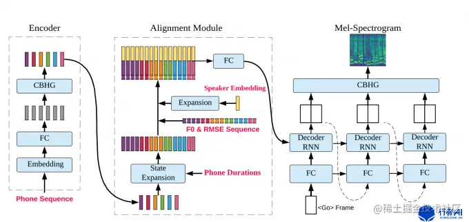 (1)音素序列(phone sequence)经过embedding层、全连接层(FC),生成隐层表示