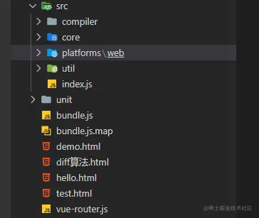 目录结构如下,尽量保持和vue源码目录结构一样原汁原味
