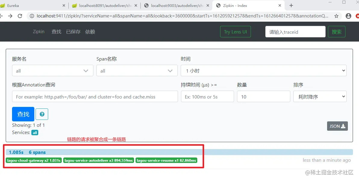 【说明】 其中使用的 uri 是动态路由。lb 代表 => 从注册中心获取服务;后面加上 目标服务名称
