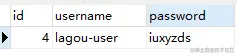 INSERT INTO `users` VALUES (4, 'lagou-user', 'iuxyzds');