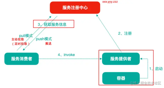 - 服务注册 服务提供者 将所提供服务的信息(服务器IP和端⼝、服务访问协议等)注册/登记到注册中心