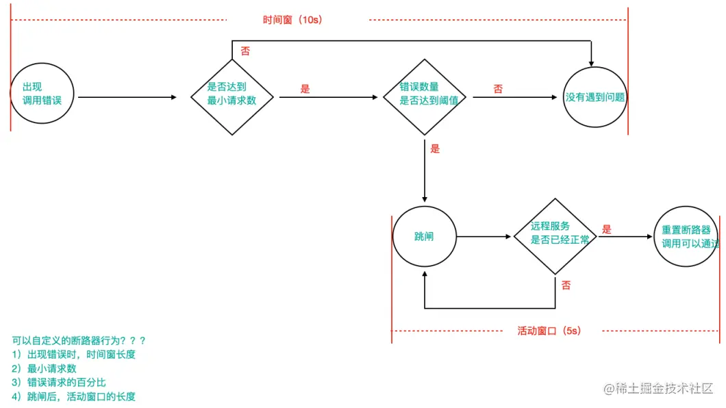 - 熔断(断路保护) 当下游服务因访问压力太大而