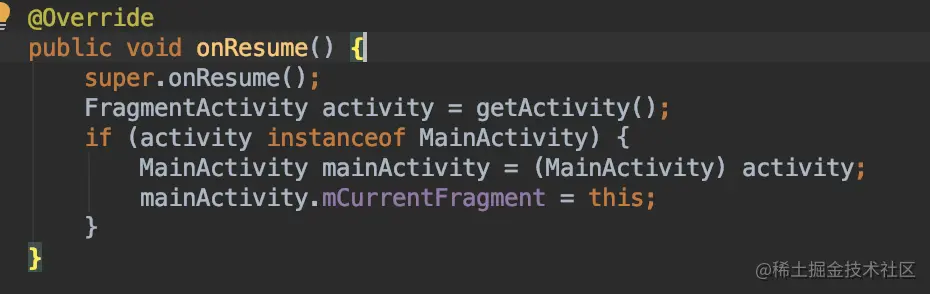 问题二:系统返回键处理,也比较好解决,在Activity中定义一个局部变量fragment,然后在Base每次onResume的时候将该变量指向自己,像这样