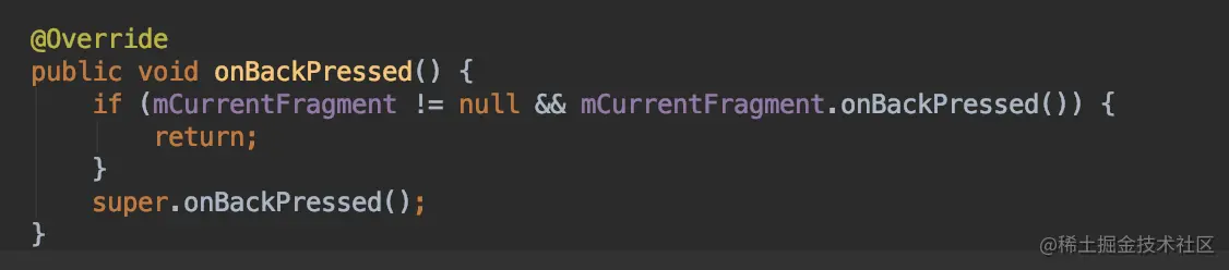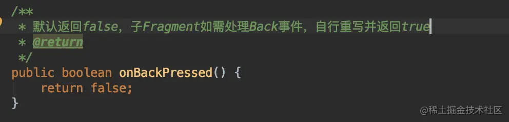 然后在BaseFragment中定义一个方法,子类如需处理Back事件,重写此方法并返回true
