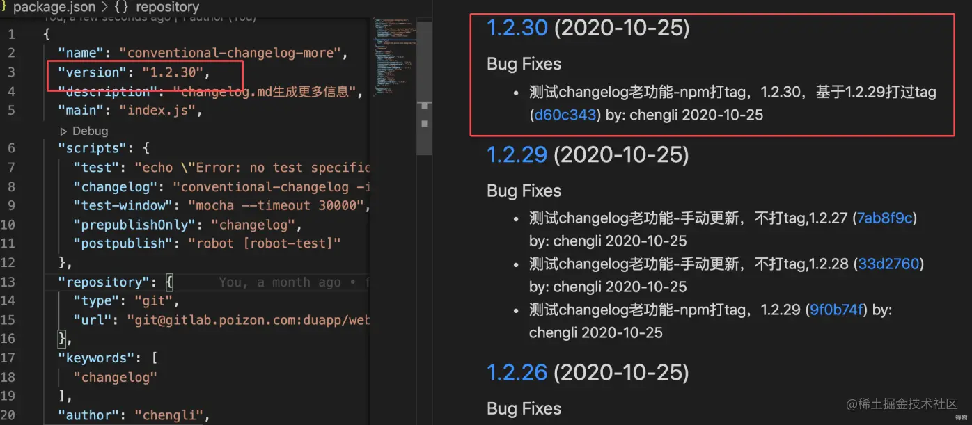 • 从 Commit 规范化到发布自定义 CHANGELOG 模版: juejin.cn/post/684490…