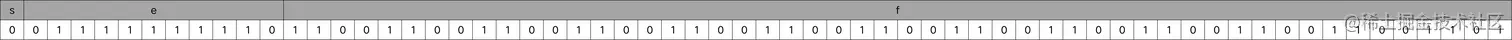 当我们尝试把十进制的 0.3 转换成二进制时,你会发现,我们得到的是 0.0100110011…,这里的「0011」会无限循环下去,如果用上面这段伪代码去计算 0.3 的二进制,它会陷入死循环,永远无法结束!按照上次讲的 IEEE-754 标准,0.3 应该表示成 ,如果在计算机中存储为 32 位的浮点数,即 float,就是这样: