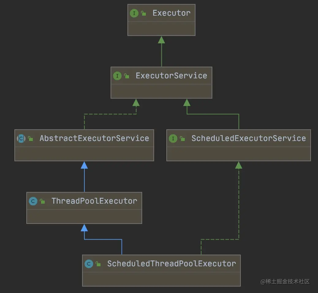 - Executor 的定义非常简单,就定义了线程池最本质要做的事,执行任务。