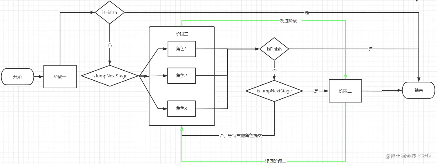 1、审批流,涉及三个阶段,每个阶段分别有不同的角色审批;