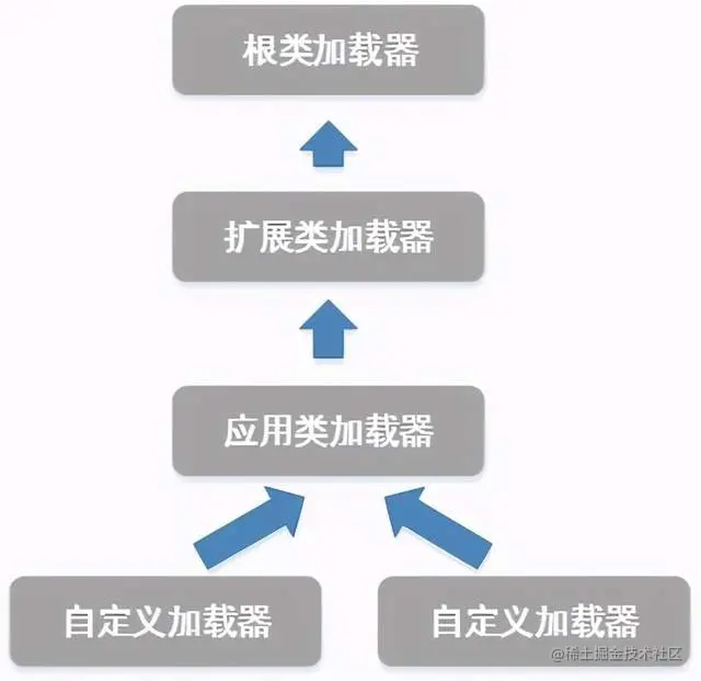 我们的应用程序都是由这3种类加载器相互配合进行加载的,如果有必要,还可以定义自己的类加载器。这些类加载器之间的关系如下: