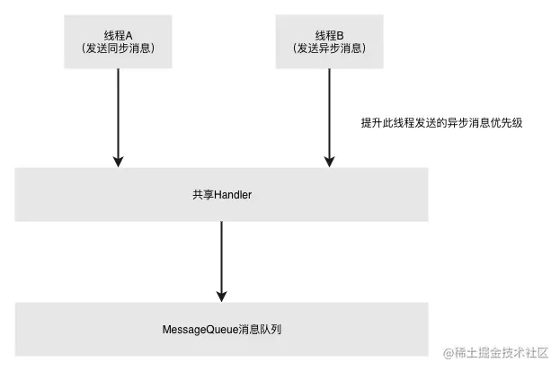 图示Android系统原理之Handler同步屏障(四) 千水 2021-02-06 664 阅读1分钟 上节问题解答 哪些实际的业务场景可以使用同步屏障技术实现? 答:多个线程共享同一个Handler、多Handler场景 目录 Handler同步屏障(一):同步屏障是什么 Handler同步屏障(二):同步屏障的执行流程 Handler同步屏障(三):系统对同步屏障的应用 Handler同步屏障(四):业务对同步屏障的应用 业务对同步屏障的应用 本小节主要为发散思维 多个线程共享同一个Handler 多Handler场景 系统不支持直接创建异步消息Handler,可以通过拦截Message并设置为异步消息间接实现。
