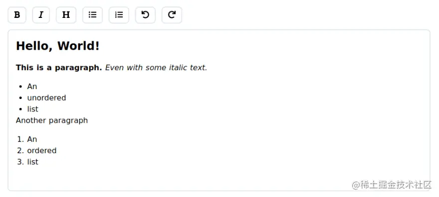 现在看起来是不是越来越接近了。还缺少按钮动作的执行方法。这里要用到document.execCommand,虽然MDN已经宣称将废弃该特性,但是大部分浏览器仍然支持。我们暂且还是使用它。