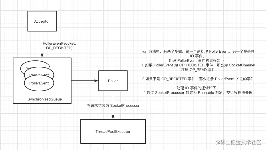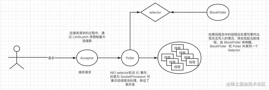 默认情况下,使用的 ProtocolHandler 实现类为 Http11NioProtocol, 其内部持有一个 NioEndpoint 实例。从命名上看,Http11NioProtocol 是处理 HTTP1.1 协议的连接器,并且以 NIO 模式进行 IO 操作。组合 Http11Processor 处理 Http1.1 协议,组合 NioEndpoint 处理请求和数据读写。