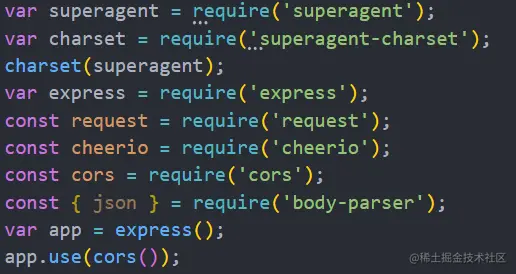 1、首先下载这几个依赖包 npm i superagent superagent-charset express request cheerio cors body-parser 然后引入