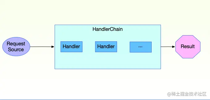 如果有多个对象(Handler)都有机会处理数据源(RequestSource,这里不是单纯的数据库数据源,可以是一个请求,总之是来源),责任链可以使数据的发送者和接收者解耦,数据沿着责任链传递,直到有一个对象处理了它为止。 上去形成了一条流水线的链条,所以称之为责任链,但是不仅仅局限于链条,还可以成树形或者环形,这取决于你的业务设计