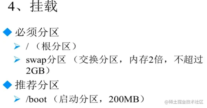 给分区分配盘符的过程叫做挂载,把盘符叫做挂载点.必须给分区一个挂载点才可以正常使用.