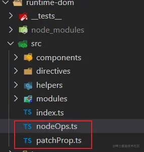 接下来我们针对rendererOptions部分方法看看vue3到底是怎么对元素和属性操作,源码位置如下: