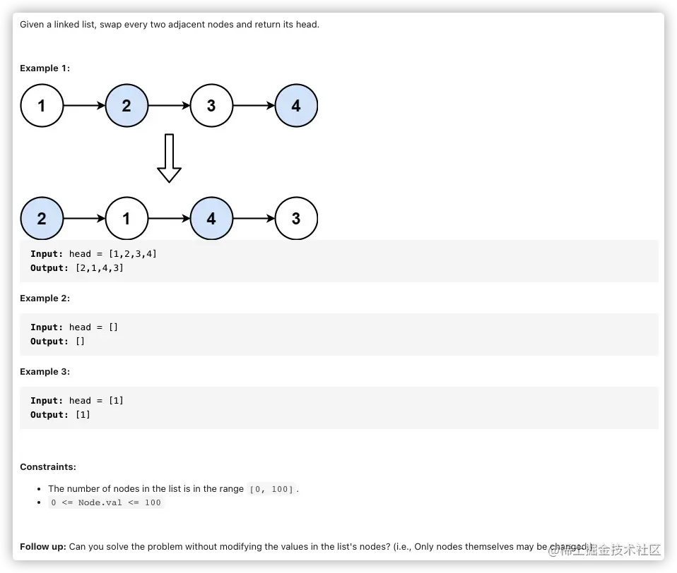 这里如果直接进行交换的话,不方便处理临界条件且不方便最后的return;可以先构造一个前驱node