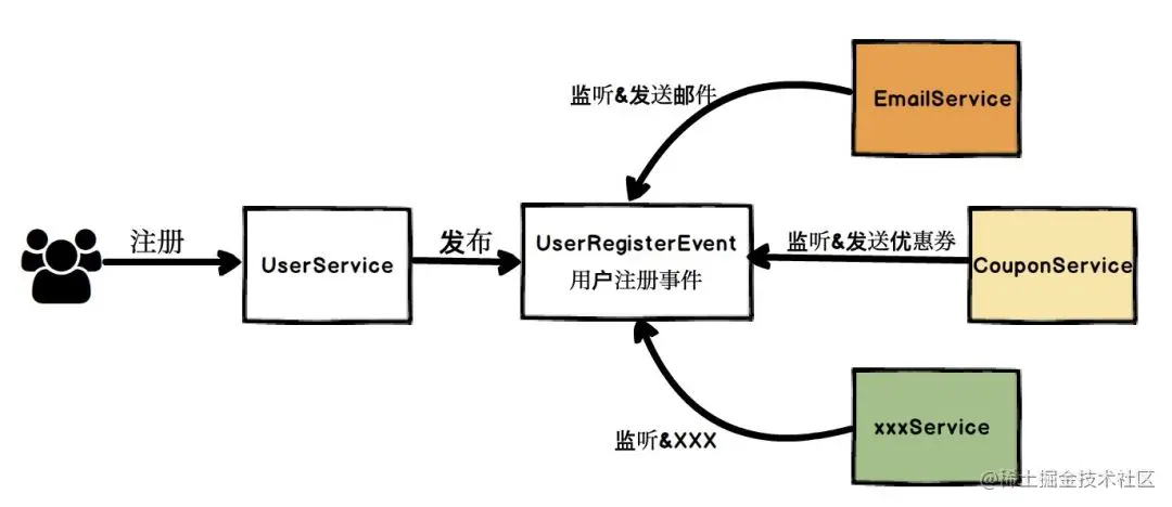 applicationEventPublisher.publishEvent(new UserRegisterEvent(this, username));
