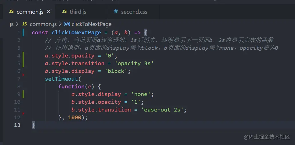通过实验发现,和second.style.display = 'block'有关只有吧这行代码放在延迟函数的外面让他先执行,后面的渐变动画才会提现出来,但具体原因还需要思考