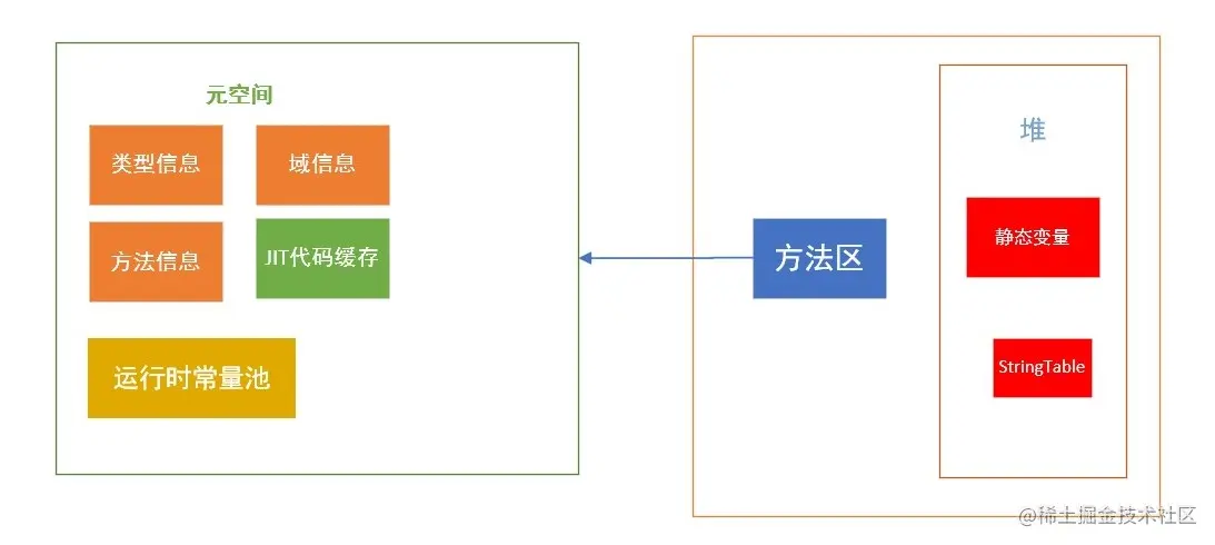 用于存储被虚拟机加载的类信息,常量 ,static变量、即时编译器编译后的代码缓存。常量池也是在方法区的。