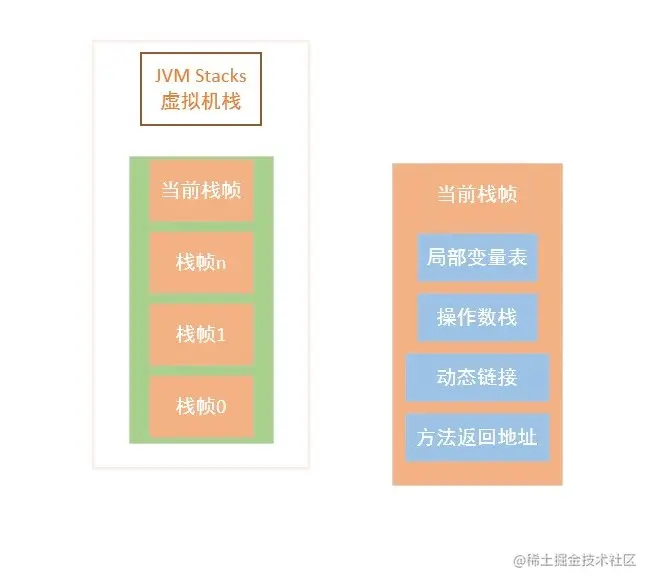 用于实现方法的调用,每次方法调用就对应栈中的一个栈帧。