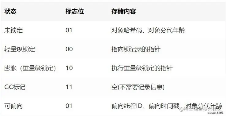 对象头包括两部分,第一部分是markword,用于存储对象自身运行时数据,如哈希码(HashCode)、GC分代年龄、锁状态标志、线程持有的锁、偏向线程ID、偏向时间戳等。这部分数据的长度在32位和64位的虚拟机(未开启压缩指针)中分别为32bit和64bit。第二部分是类类型指针,即对象指向它的元数据指针,虚拟机通过这个指针来确定这个对象是哪个实例的。**如果是数组对象的话,那么对象头中还必须有一块数据记录数组长度。**对象实例这部分则是对象真正存储的有效信息,页时程序代码中所定义的各种类型的字段内容,无论是从父类继承下来的还是在子类中定义的,都需要记录下来。对齐填充不是必须的,仅仅起着占位符的作用,当对象实例数据部分没有对齐时,就需要通过对齐填充来补全。