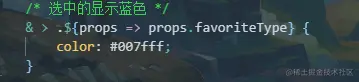 (注:styled-components 有一个坑,就是 props 只能是通过 const styled.xxx``定义的变量的 props,如上图第一张图所示,favoritetype 只能加在 StyledFavorites 上,不能加在里面的 span 上, styled-components 读取不了通过 css 选择器选取的元素的属性)