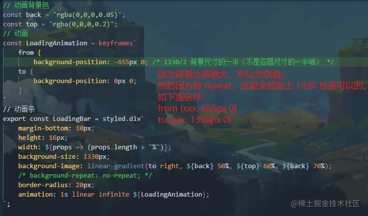 linear-gradient 不支持 css 动画,因此采用 background-position 的方式,先将背景放大两倍,再从中间开始改变 position。