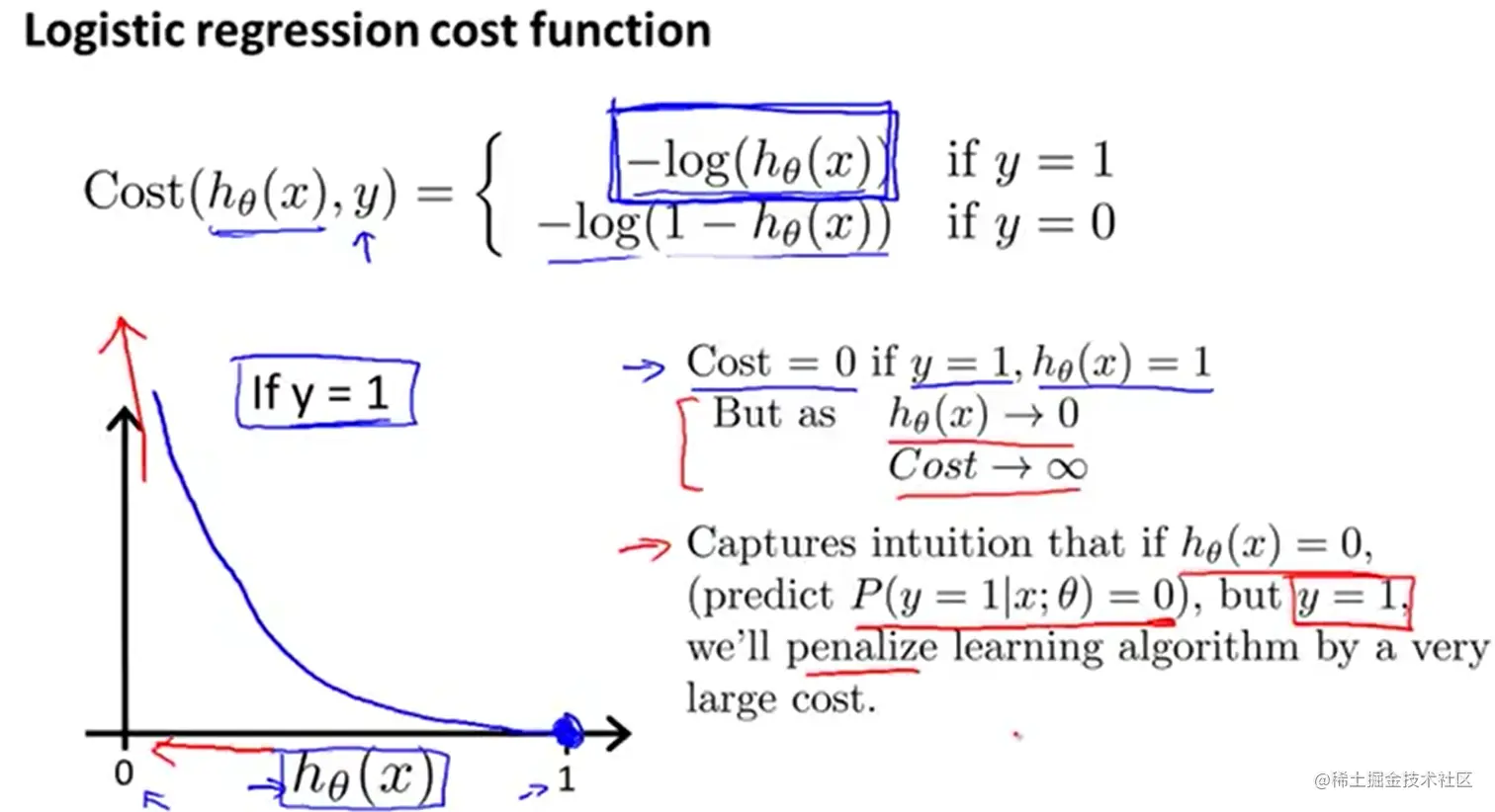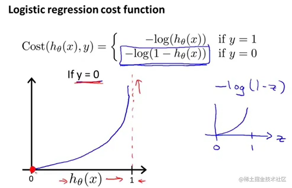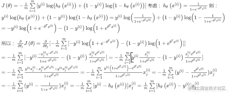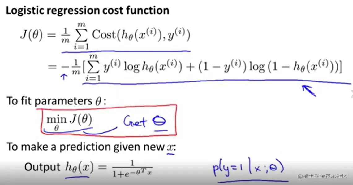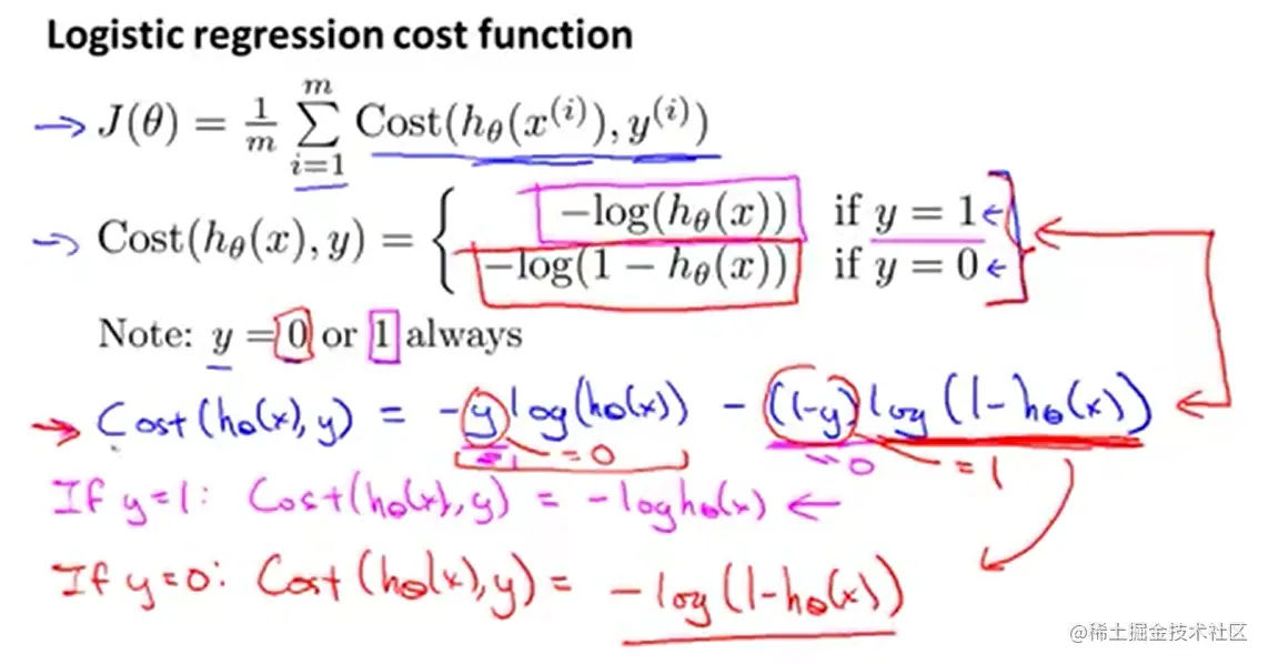 J = -1./m * (np.dot(y.transpose(), np.log(h)) + np.dot((1-y).transpose(),np.log(1-h)))