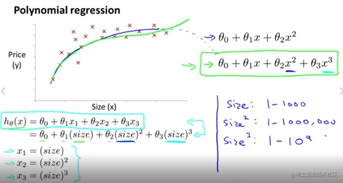 polynomial regression 额外要注意需要 feature scaling