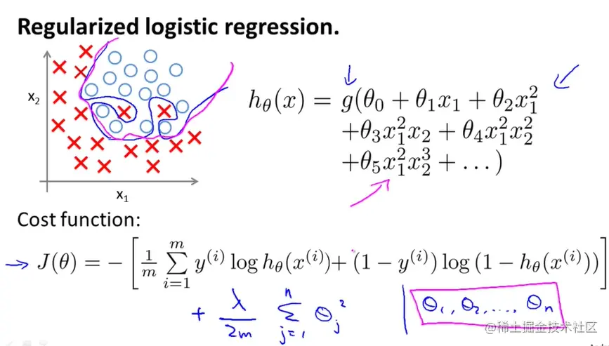 theta: weight vector of dimension (n+1,1)
