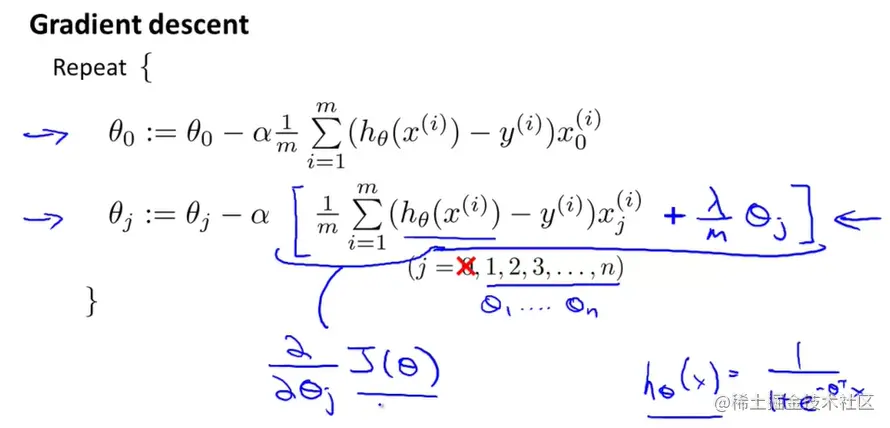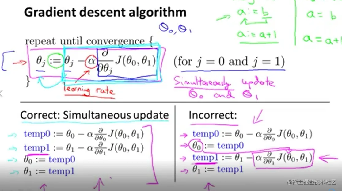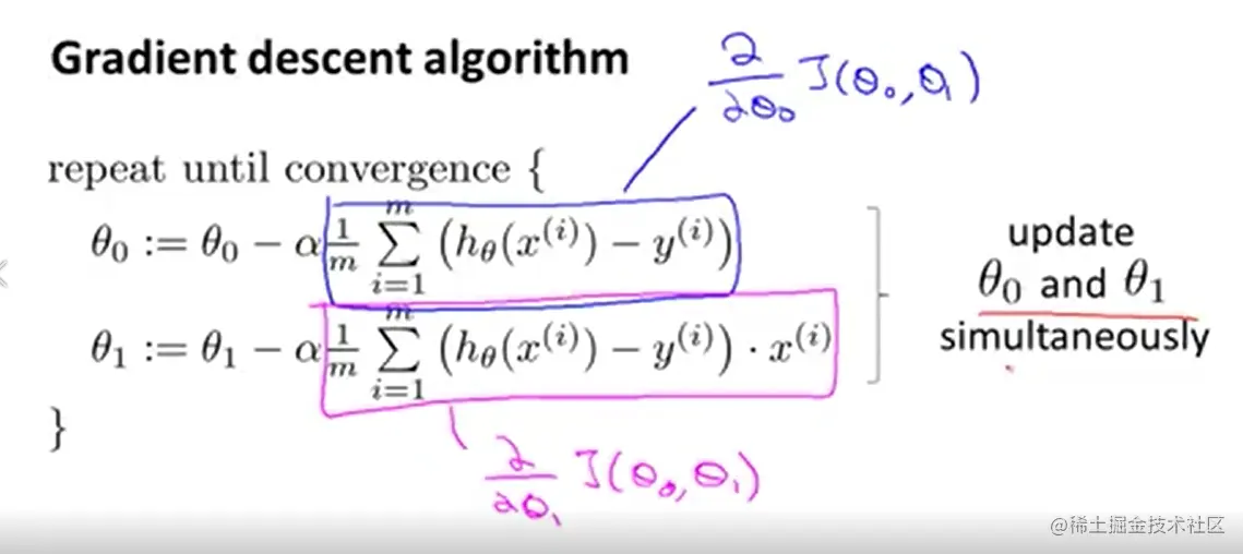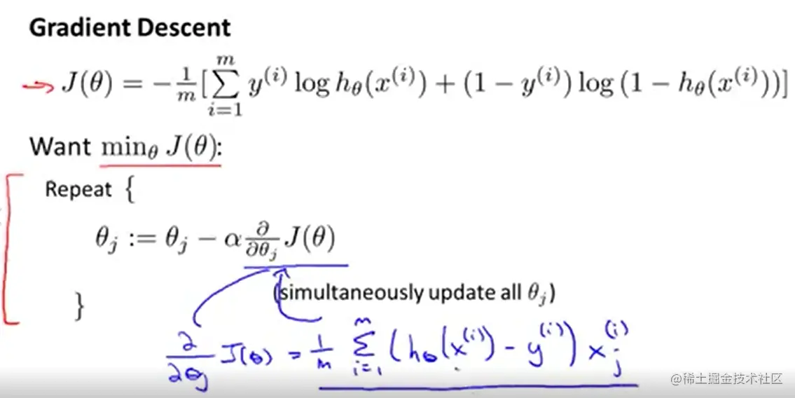 Gradient descent 可以用来求使 cost function 最小的 θ 值。