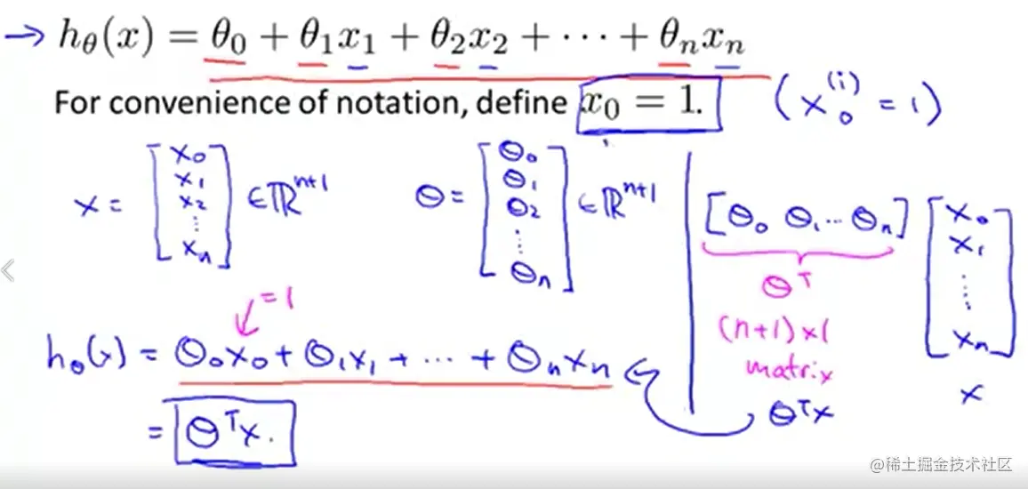 x: matrix of features which is (m,n+1)