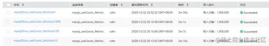 小编还测试了100万的小表,明显方式1和方式3的速率要远远高于方式2,另外小编还测试了1000万的大表,方式1爆内存,方式2正常迁移但耗时20分钟以上,而方式3仍然可以在15分钟内跑完。