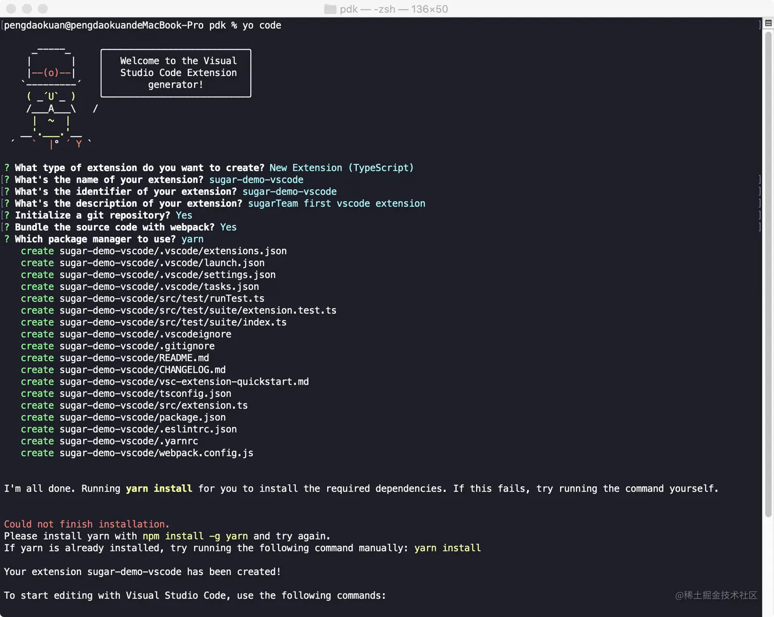 微软为了造福大众,提供了一个 yeoman 脚手架,通过此脚手架可以生成开发插件的模版代码。可以通过命令进行安装
