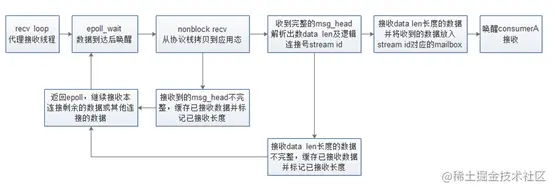 TCP代理在现有的逻辑连接、代理分发、quota流控等实现的基础上,将数据通道从SCTP协议替换成TCP协议,TCP代理逻辑连接的实现基于head+data的数据包收发模型,在head中写入逻辑连接id及后续data的长度。