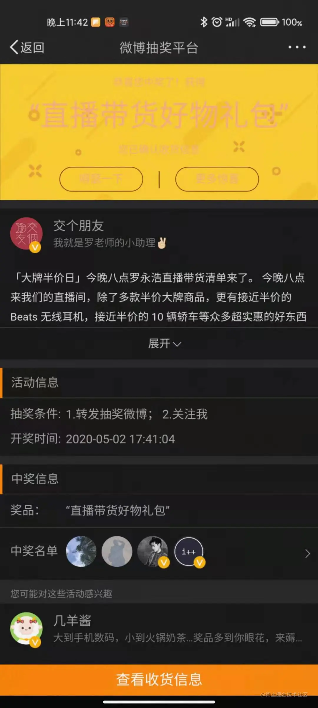Ps:我在2020年还中罗老师的微博抽奖