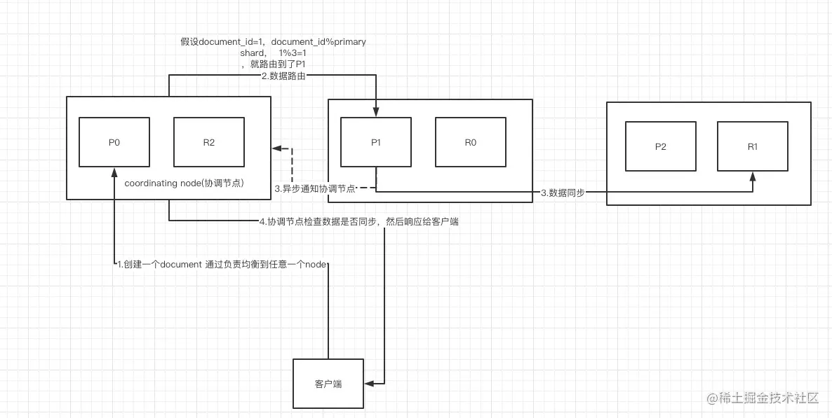 (3)实际的node上的primary shard处理请求,然后将数据同步到replica node