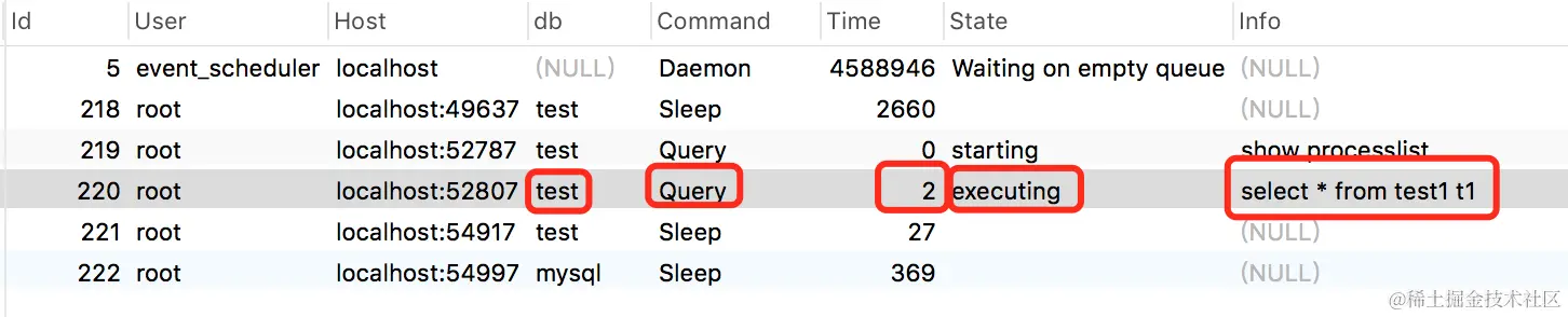 还可以查看当前的连接状态帮助识别出有问题的查询语句。