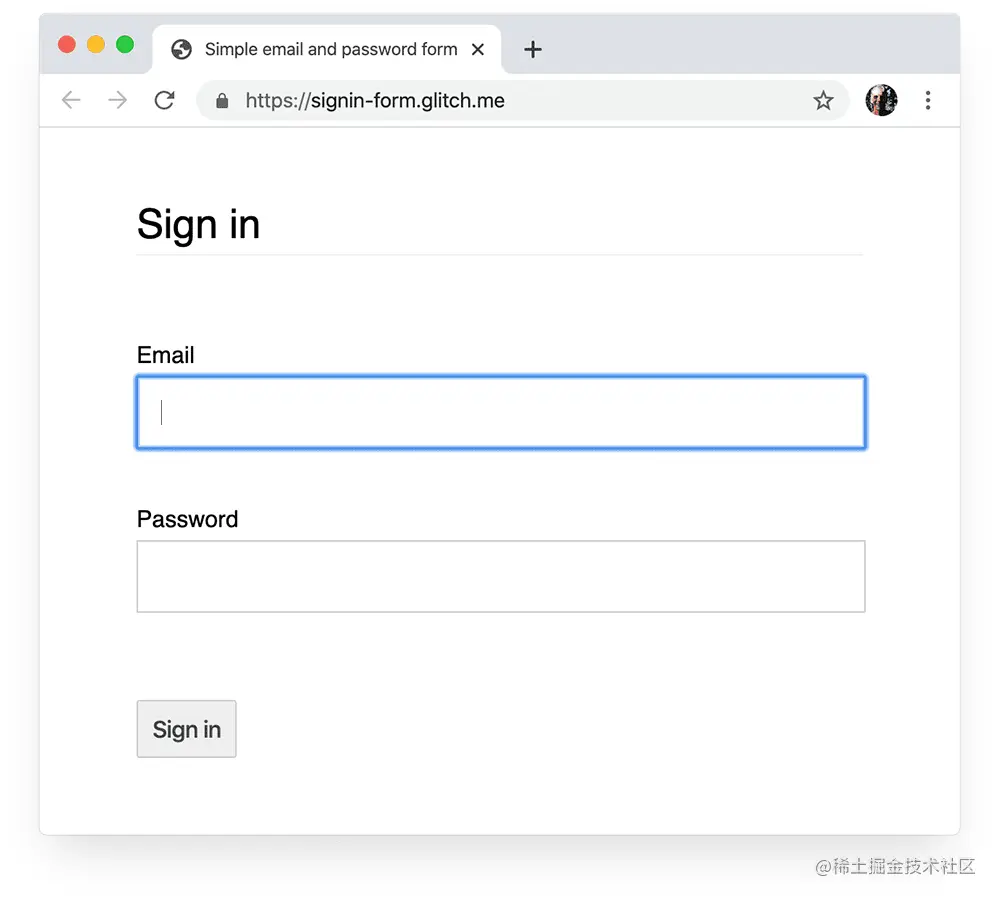 为邮件输入使用 autocomplete=“username,因为 username 会被大多数现代浏览器中的密码管理器辨识,虽然你应该使用 type=“email” 并且用 id=“email” 以及 name=“email”。