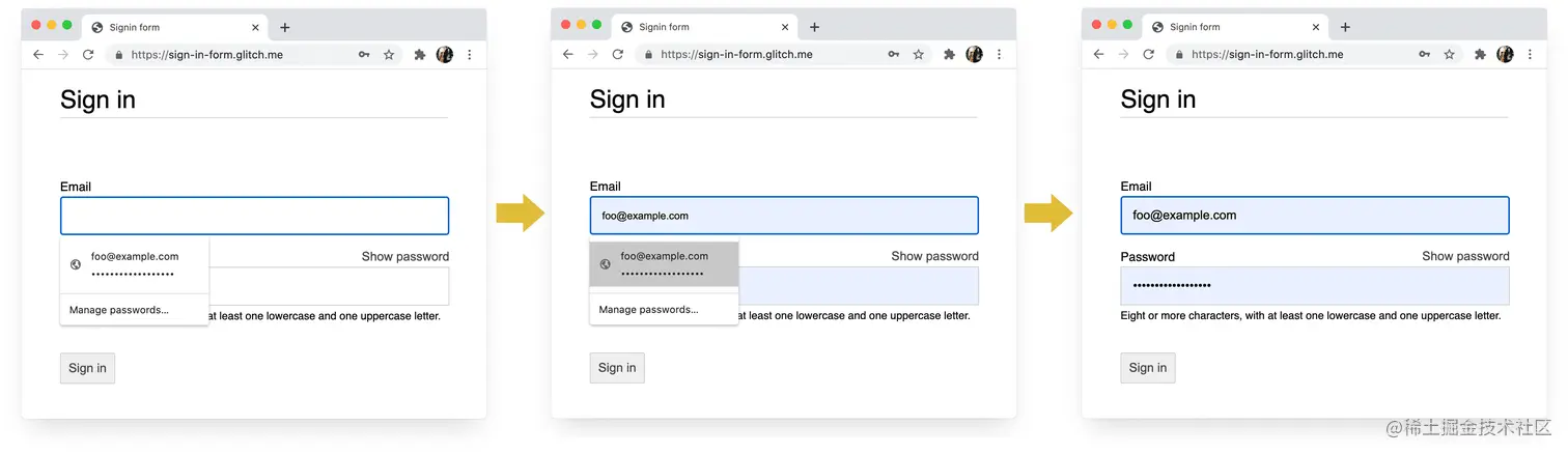 链接为一个实践了所有最佳实践的登录表单: sign-in-form.glitch.me