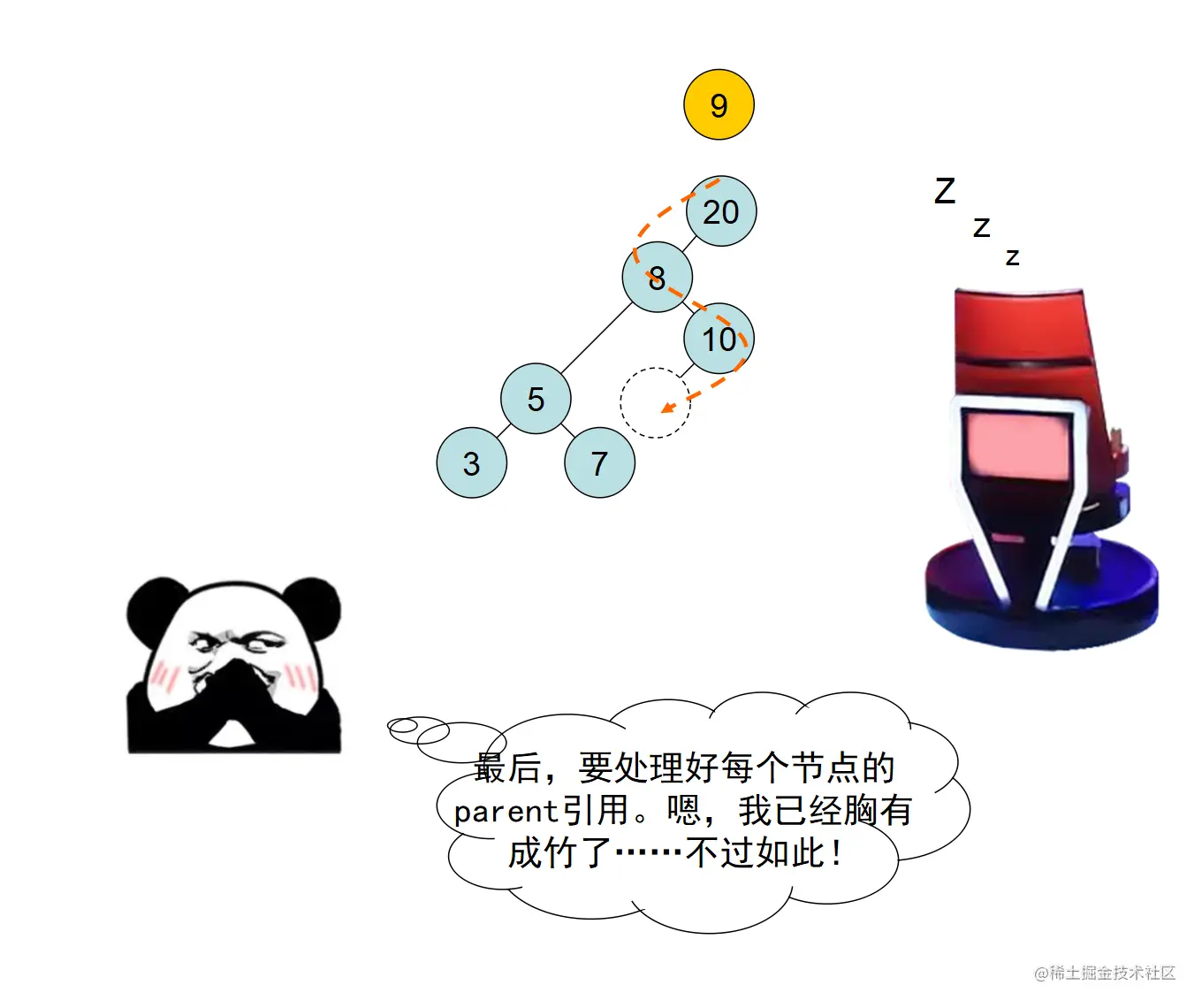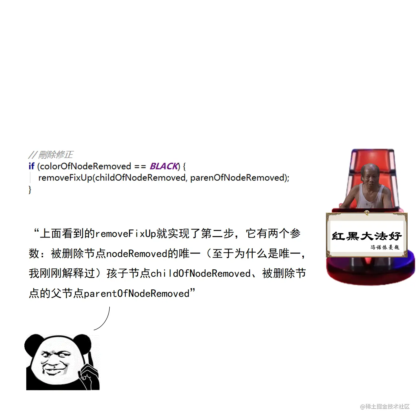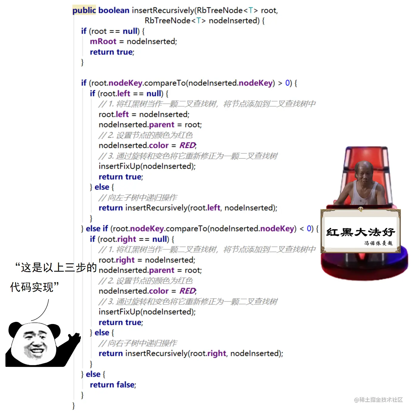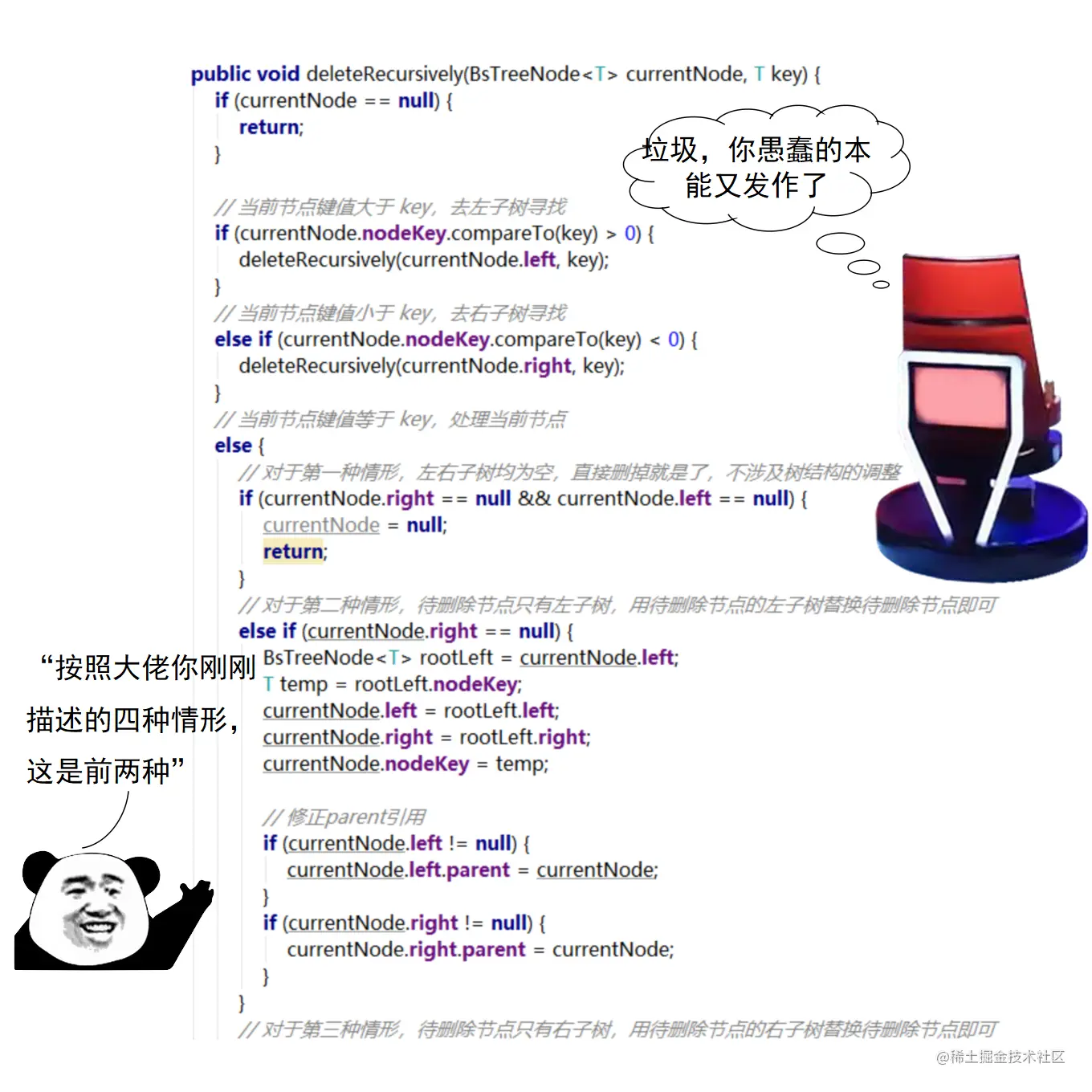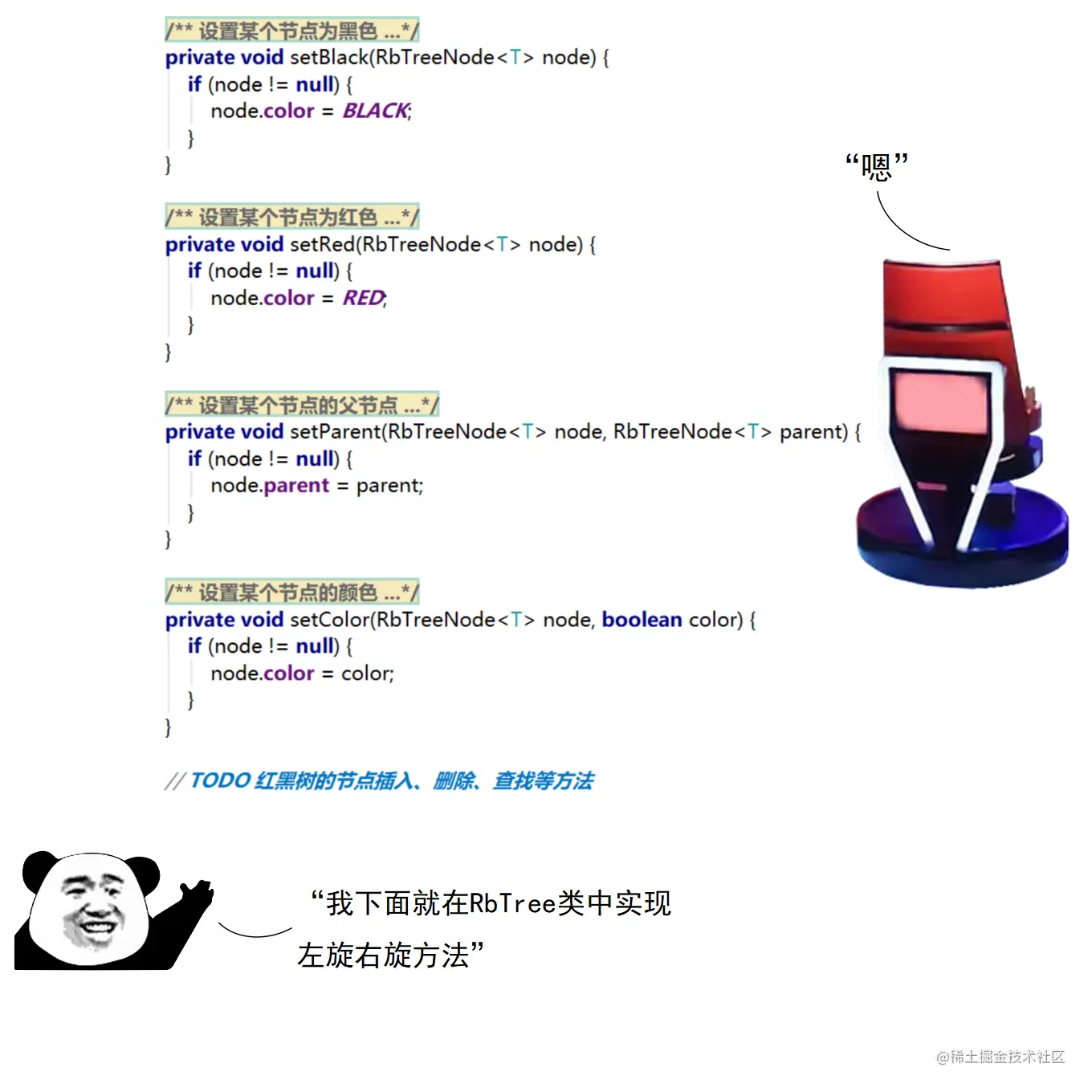 漫画采用大量的图示来展示红黑树操作的诸多细节,作者力求详尽,因此篇幅略长。附录给出了完整的二叉查找树定义 + 测试代码,以及红黑树定义 + 测试代码。两份代码均经过了若干次十万数量级随机节点插入和删除测试,结果均无误。读者可贴到自己的 IDE 中,结合本文讲解进行调试研究。