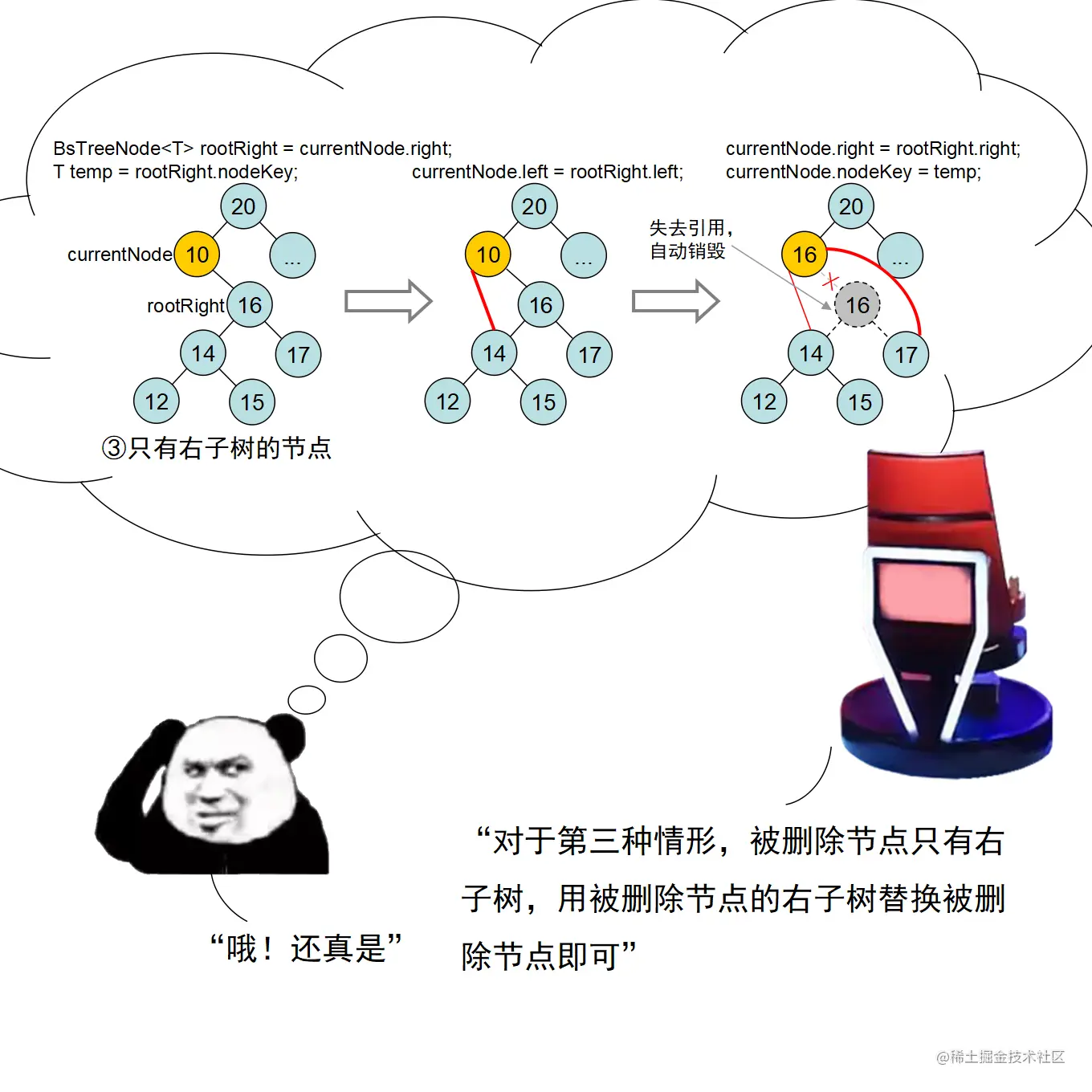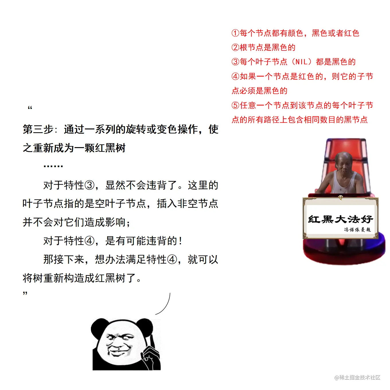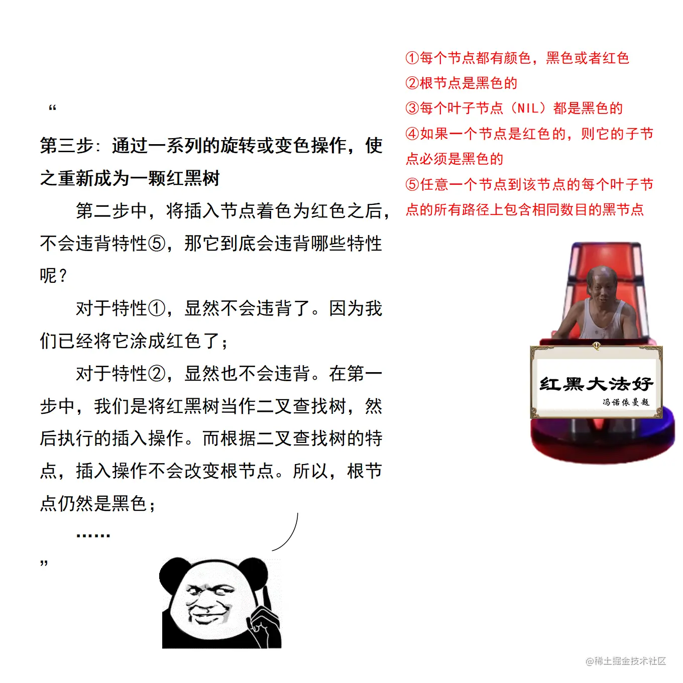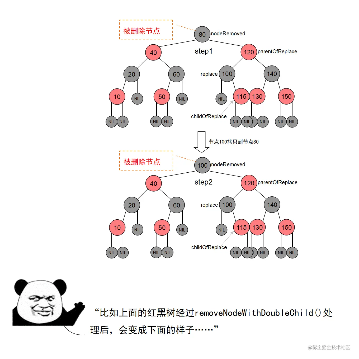漫画采用大量的图示来展示红黑树操作的诸多细节,作者力求详尽,因此篇幅略长。附录给出了完整的二叉查找树定义 + 测试代码,以及红黑树定义 + 测试代码。两份代码均经过了若干次十万数量级随机节点插入和删除测试,结果均无误。读者可贴到自己的 IDE 中,结合本文讲解进行调试研究。