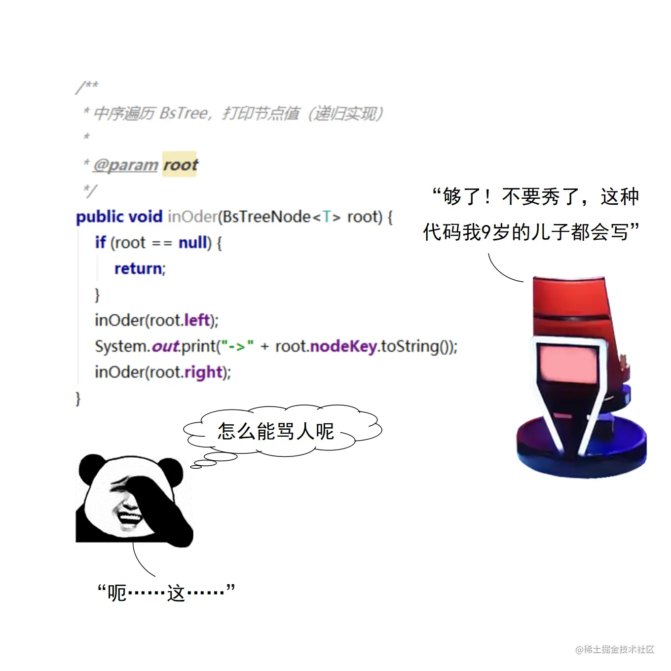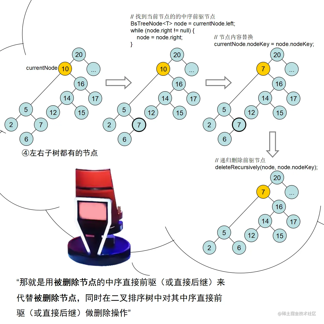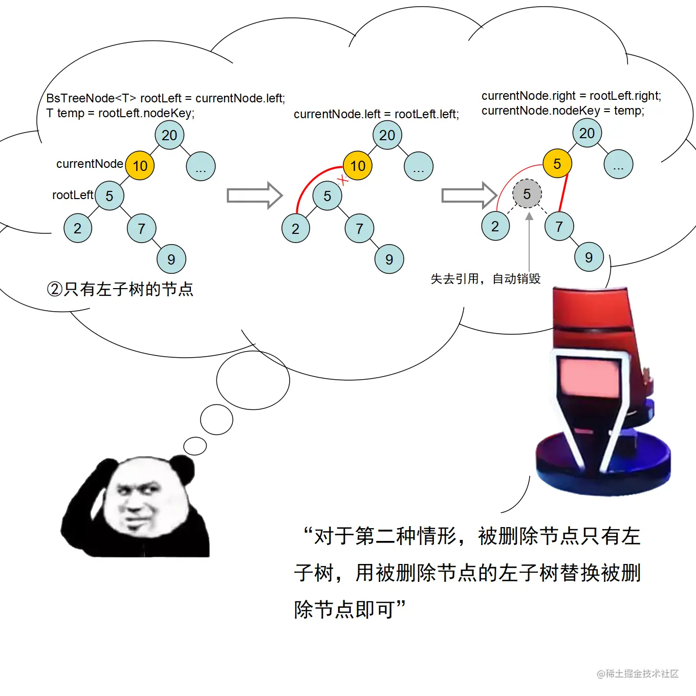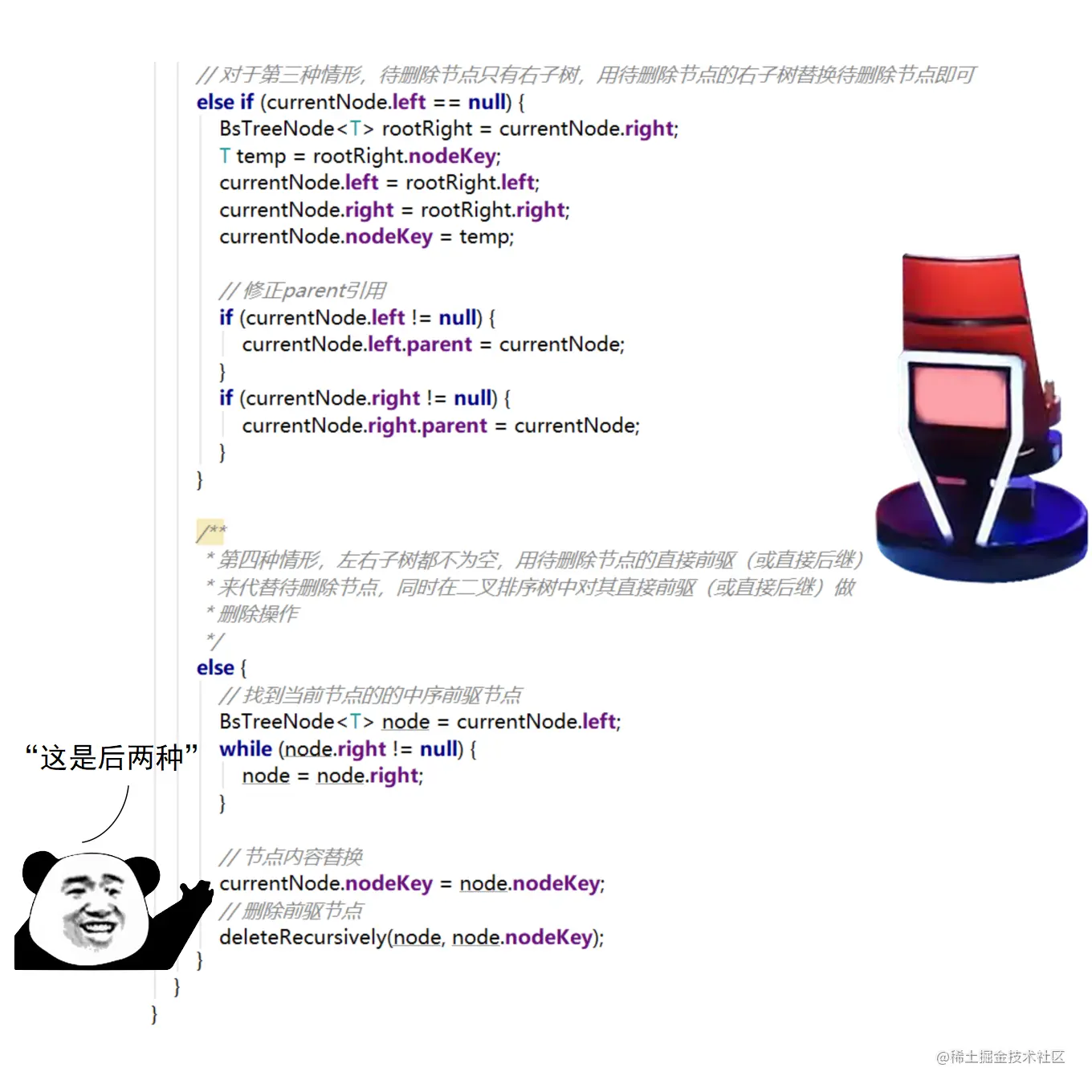 漫画采用大量的图示来展示红黑树操作的诸多细节,作者力求详尽,因此篇幅略长。附录给出了完整的二叉查找树定义 + 测试代码,以及红黑树定义 + 测试代码。两份代码均经过了若干次十万数量级随机节点插入和删除测试,结果均无误。读者可贴到自己的 IDE 中,结合本文讲解进行调试研究。