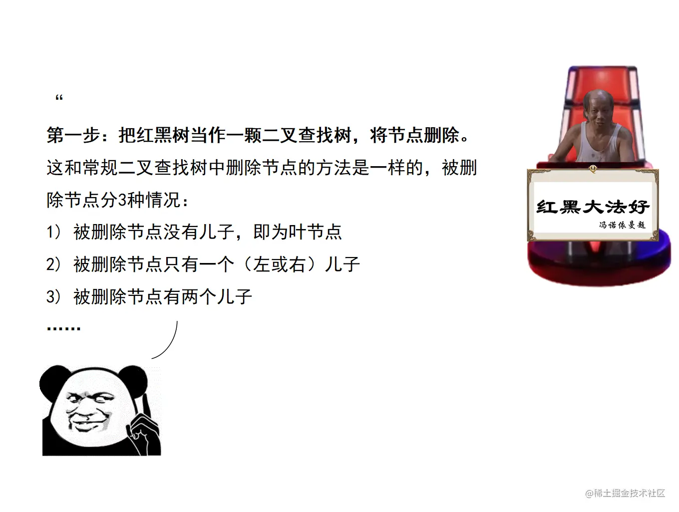 本文以漫画形式讲述红黑树,第一话讲解二叉查找树的概念和基本操作,包括节点查找、插入、删除;第二话讲解二叉查找树的缺点和红黑树的概念,以及红黑树的节点旋转操作;第三话讲解红黑树的节点插入操作;第四话讲解红黑树的节点删除操作;第五话和彩蛋部分讲解红黑树在插入修正和删除修正时,对各种CASE所进行的调整操作背后的思想。