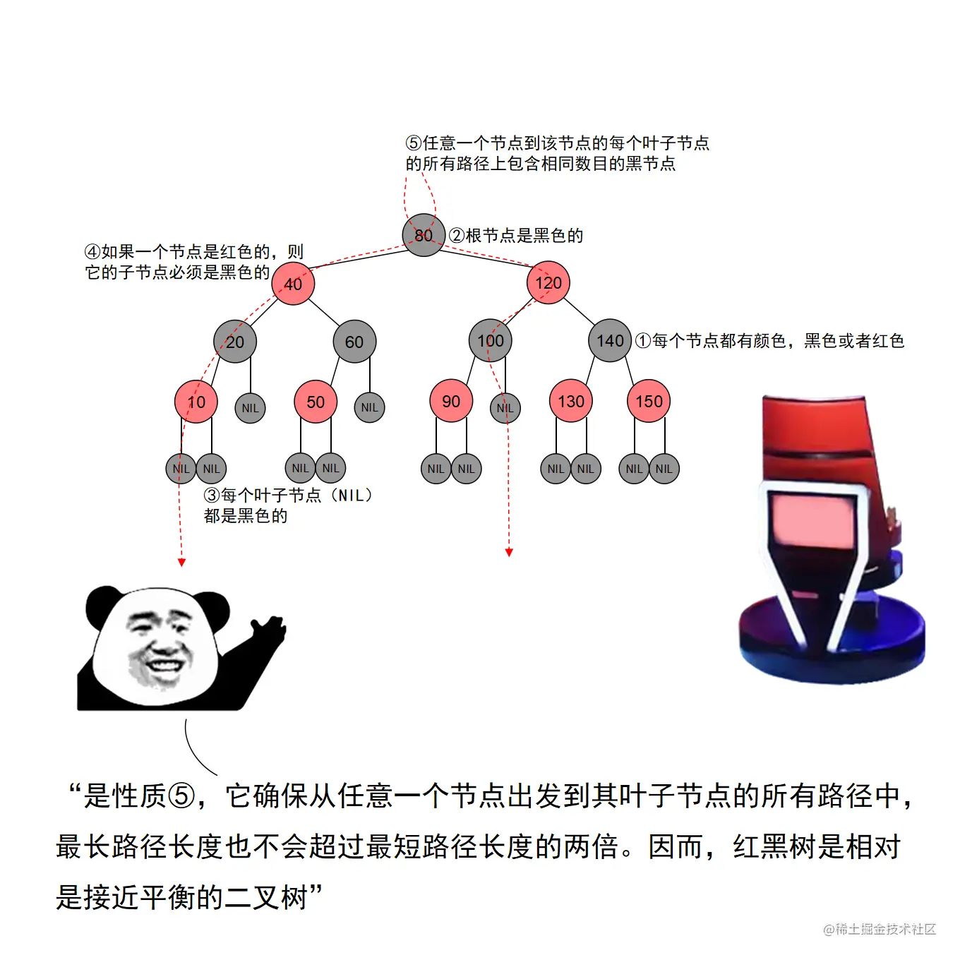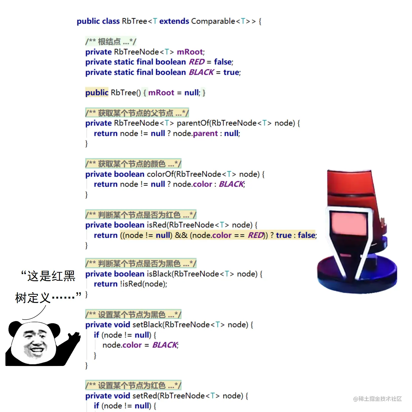 红黑树是算法领域中一个著名的二叉查找树实现,它能够以较小的开销保持二叉查找树的平衡。具备平衡性质的二叉查找树能够极大地提高节点的查询速度。举个形象一点的例子:从一个十亿节点的红黑树中查找一个节点,所需要的查询次数不到30,这不禁让人感叹算法的魅力。