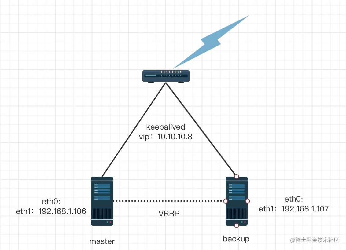两台服务器,只有一个公网地址。实现公网地址高可用,做网关使用,使得内网主机能够上外网。