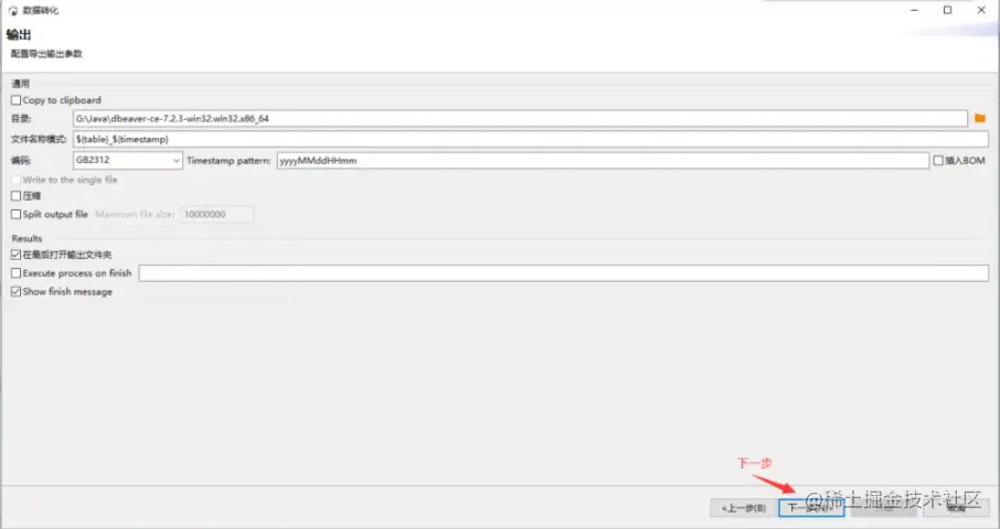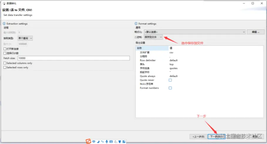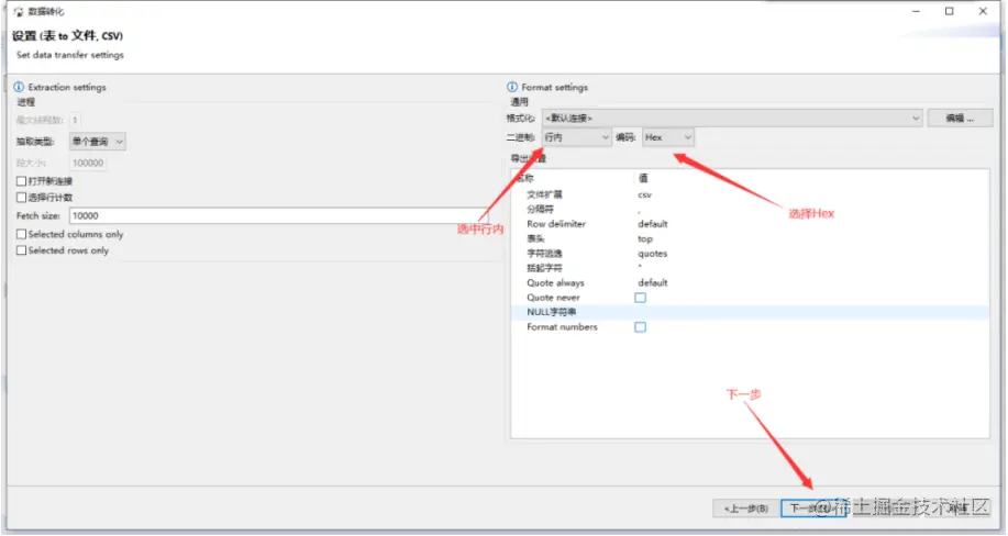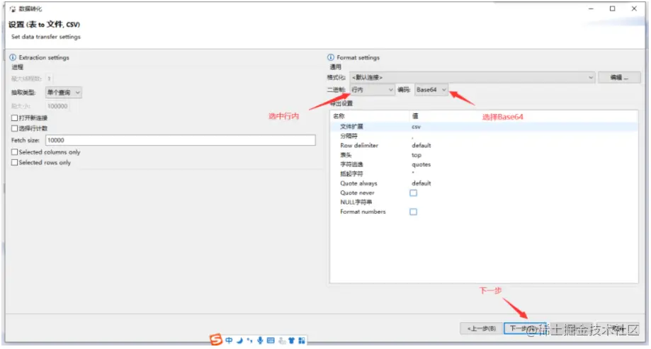 Blob字段导出时,可以选择不导出该字段,导出到文件,或者以Hex或Base64编码导出。以导出CSV文件为例。